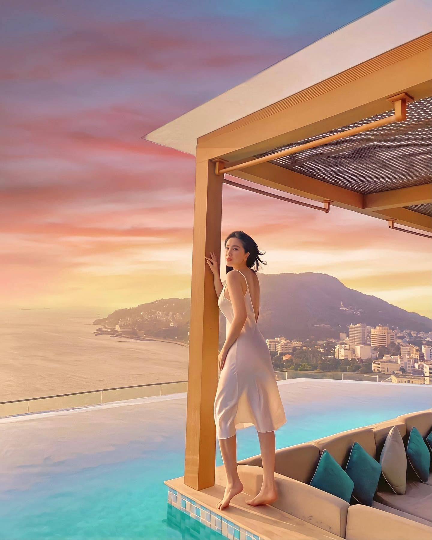 Quay sang hình ảnh mới nhất cũng tại địa điểm đó, khi đang ẵm trên tay "thiên thần nhỏ", khung cảnh vẫn thơ mộng còn người vẫn hút hồn với vẻ thân hình nuột nà như chưa trải qua bất kỳ lần sinh nở nào.