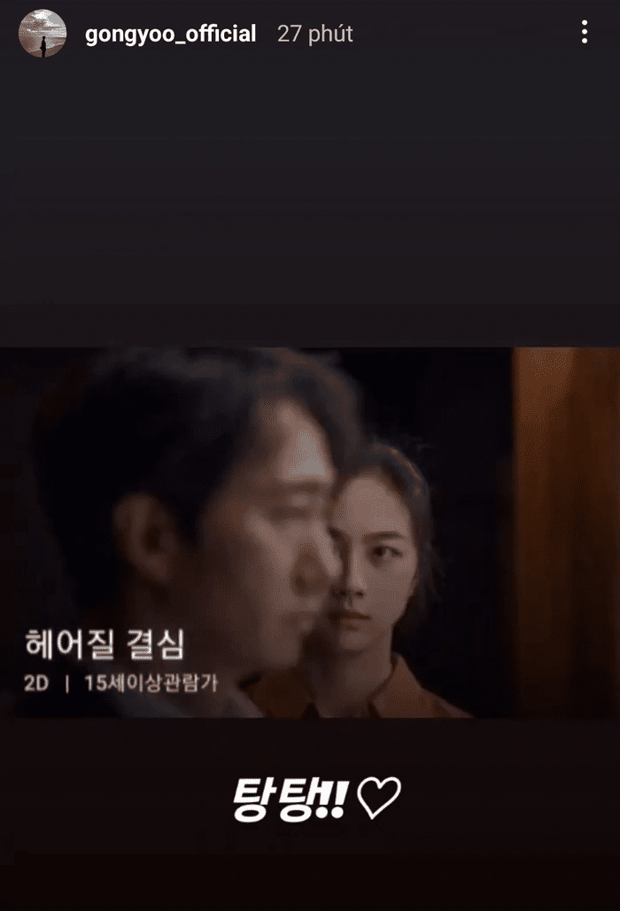 Cụ thể, Gong Yoo vừa chia sẻ ảnh Thang Duy trong phim lên tranh cá nhân. Được biết, anh cũng vừa xem Quyết Tâm Chia Tay để ủng hộ Thang Duy.