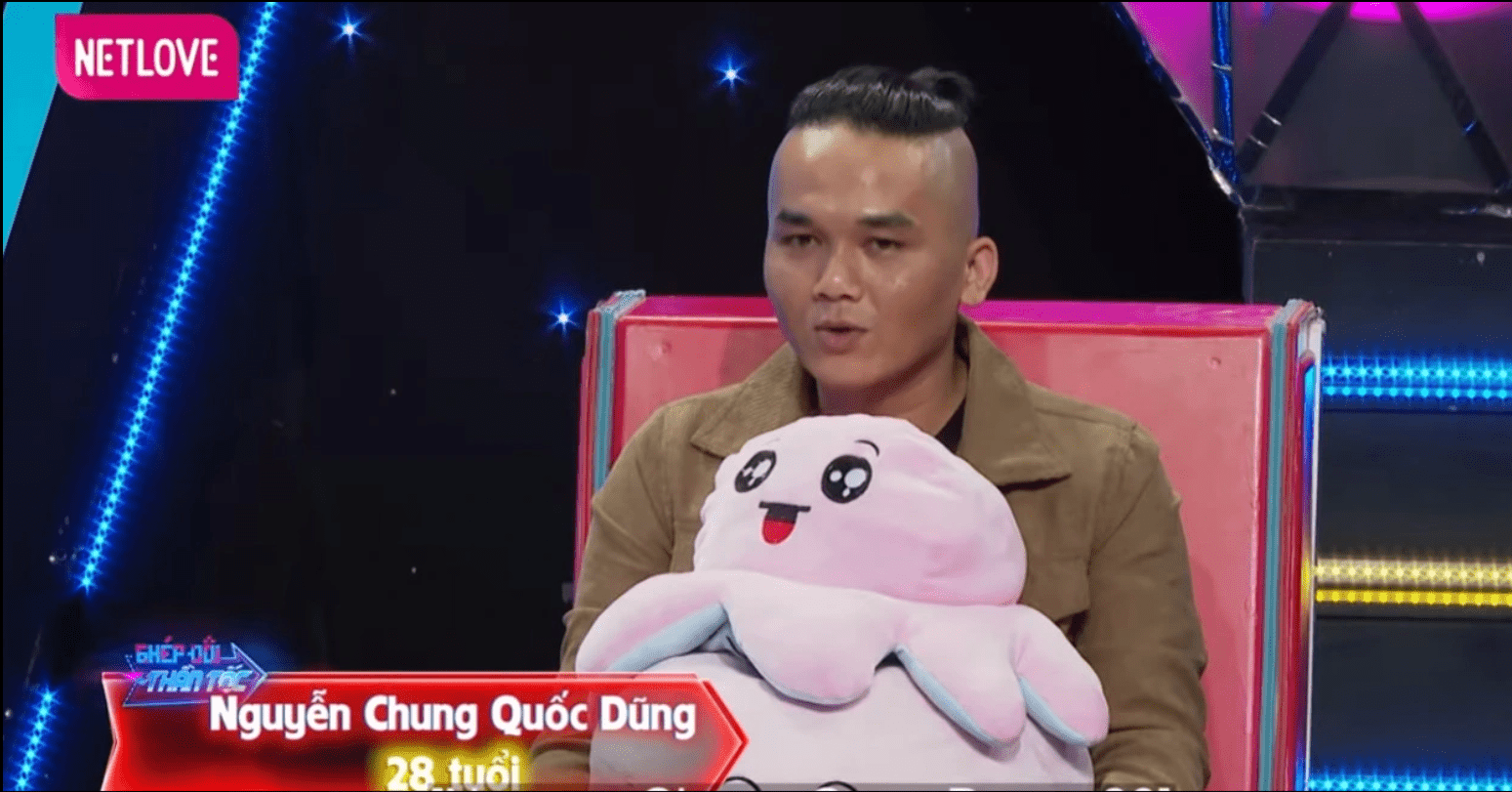 Anh Quốc Dũng (28 tuổi, quê ở Đồng Nai, hiện sống ở TPHCM) là một người làm công việc thiết kế (designer), hiện tại là giám đốc nghệ thuật của một công ty tham gia chương trình mai mối trên truyền hình Ghép đôi thần tốc.