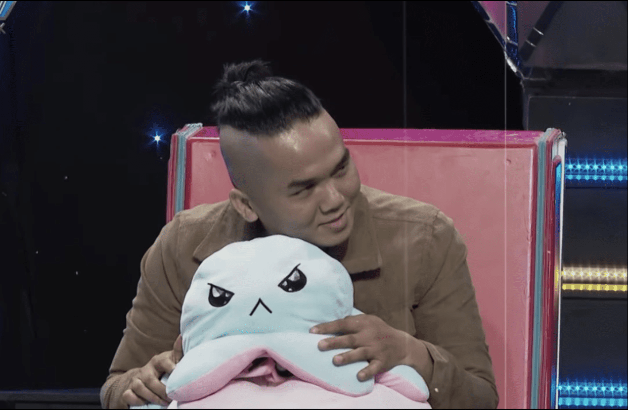 Anh Quốc Dũng tạo ấn tượng bằng món quà là chú bạch tuộc bằng bông. (Ảnh chụp màn hình)