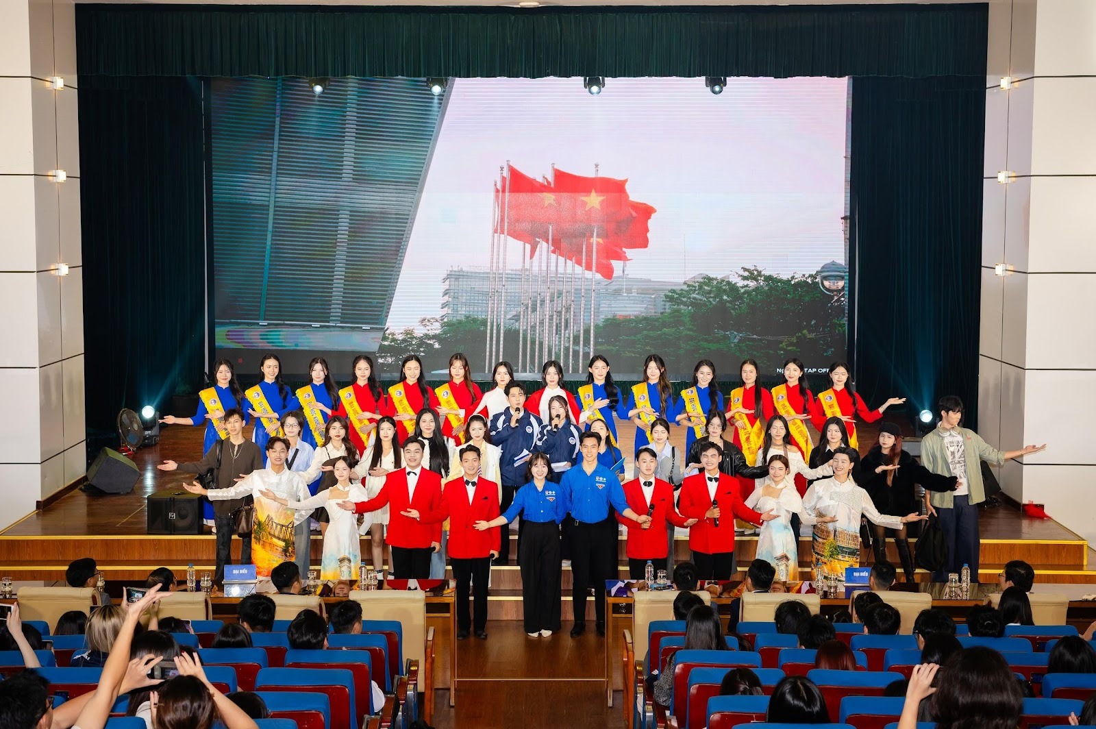 Đặc biệt, mở đầu đêm công diễn là tiết mục tổng hợp của các CLB – Đội trực thuộc Đoàn Thanh niên – Hội Sinh viên, được dàn dựng như một “bản giao hưởng thị giác – âm thanh”. Ba mảnh ghép cảm xúc được kết nối mạch lạc qua tiếng hát, tiếng Piano và Clarinet cùng phần trình diễn áo dài và trang phục hiện đại. Từ âm hưởng tri ân người thầy đến giai điệu tự hào về Tổ quốc và khát vọng hội nhập quốc tế, tiết mục đã tạo nên một lớp mở đầu giàu ý nghĩa và đầy sức lan tỏa.