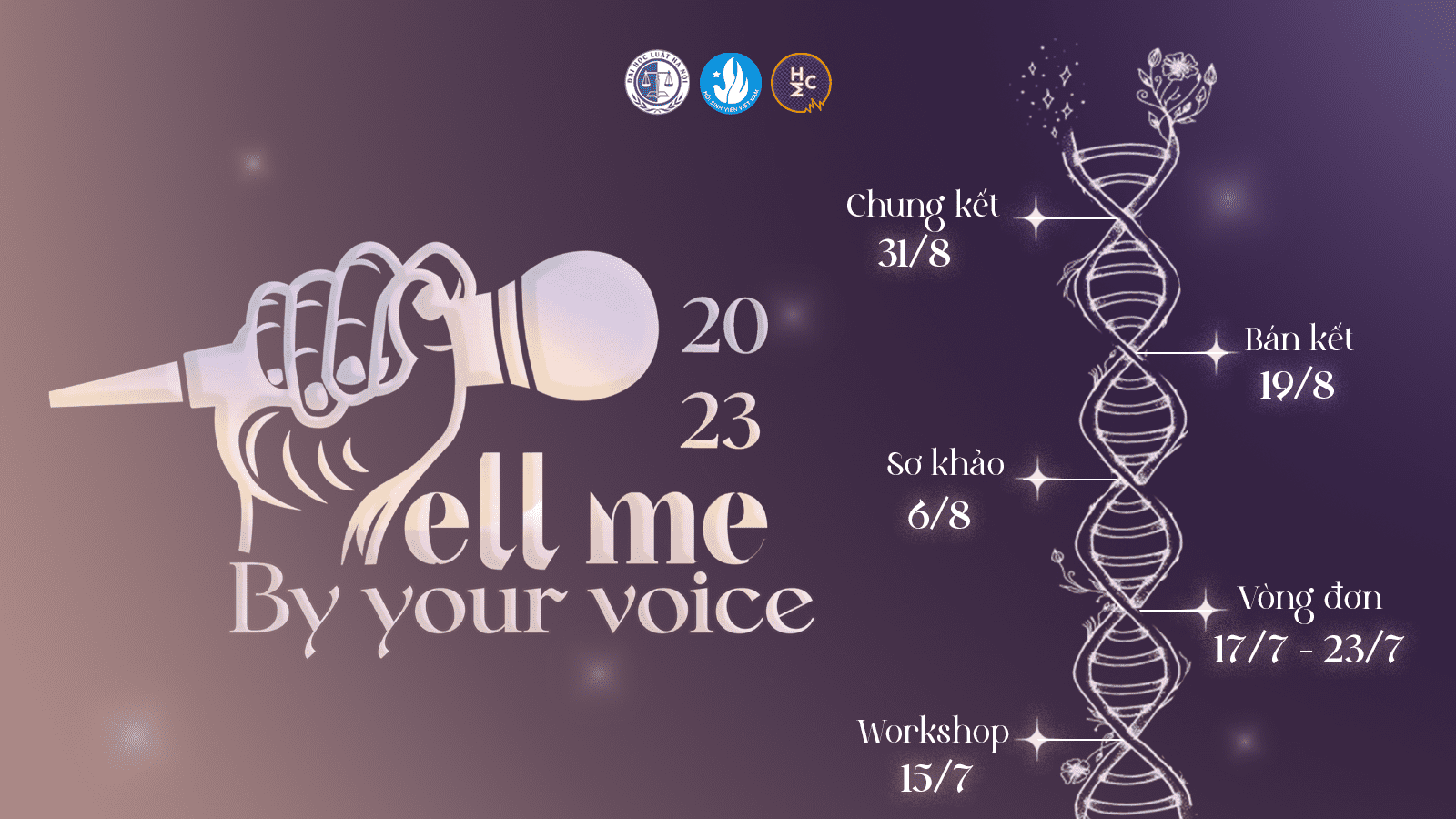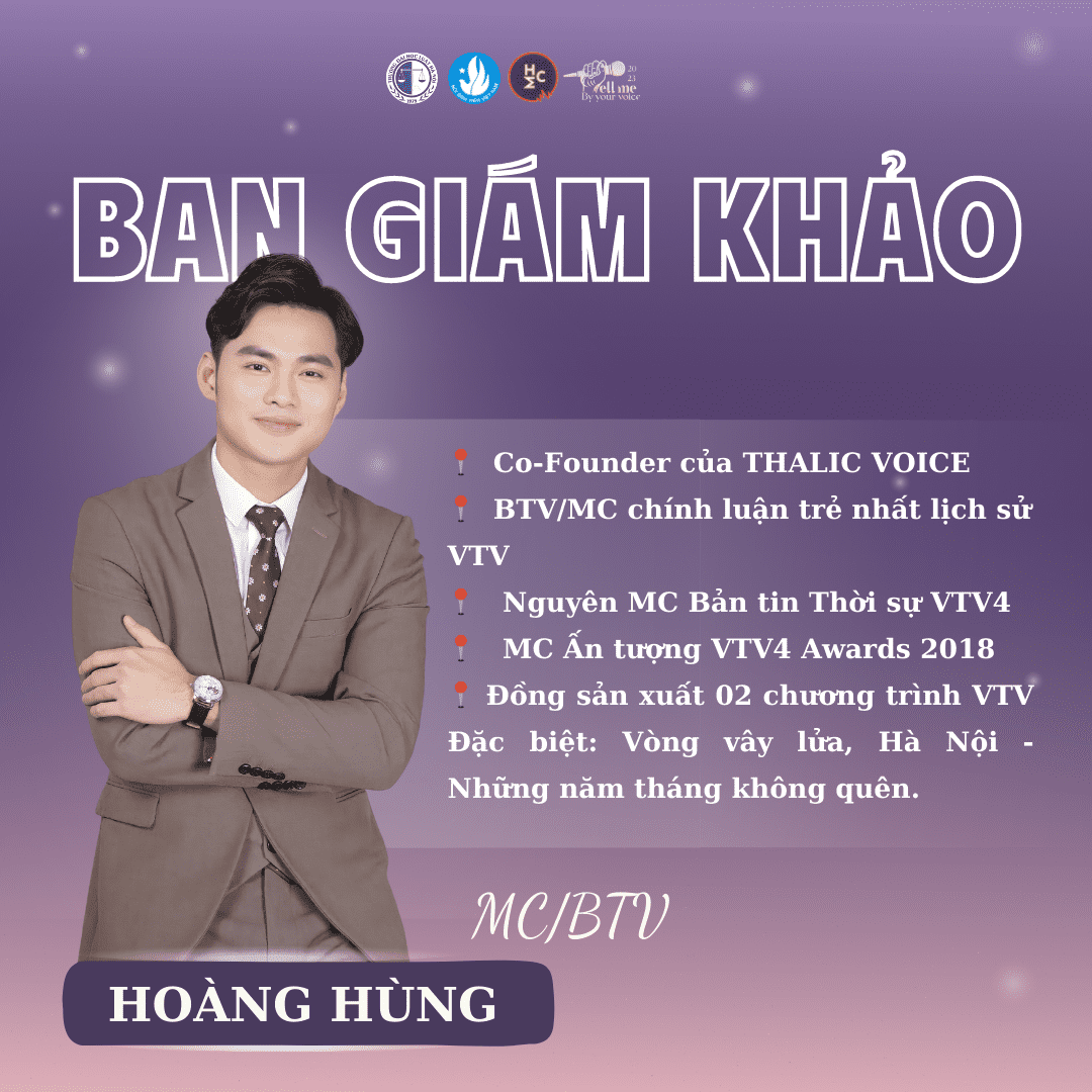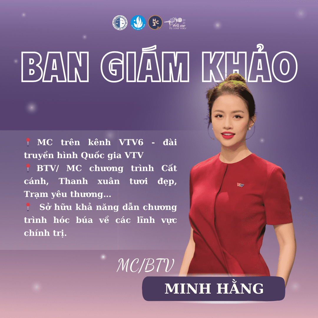 Dành cho các bạn trẻ trong độ tuổi từ 18 đến 22 quan tâm tới lĩnh vực thuộc về giọng nói, “Tell me by your voice 2022” - Cuộc thi phát thanh do Câu lạc bộ MC Trường Đại học Luật Hà Nội tổ chức đã để lại ấn tượng đặc biệt. Tiếp nối thành công mùa đầu tiên, “Tell me by your voice 2023” đã trở lại với diện mạo mới lạ, thu hút lượng lớn đơn đăng ký của các bạn sinh viên đến từ nhiều trường Đại học trên địa bàn thành phố Hà Nội.