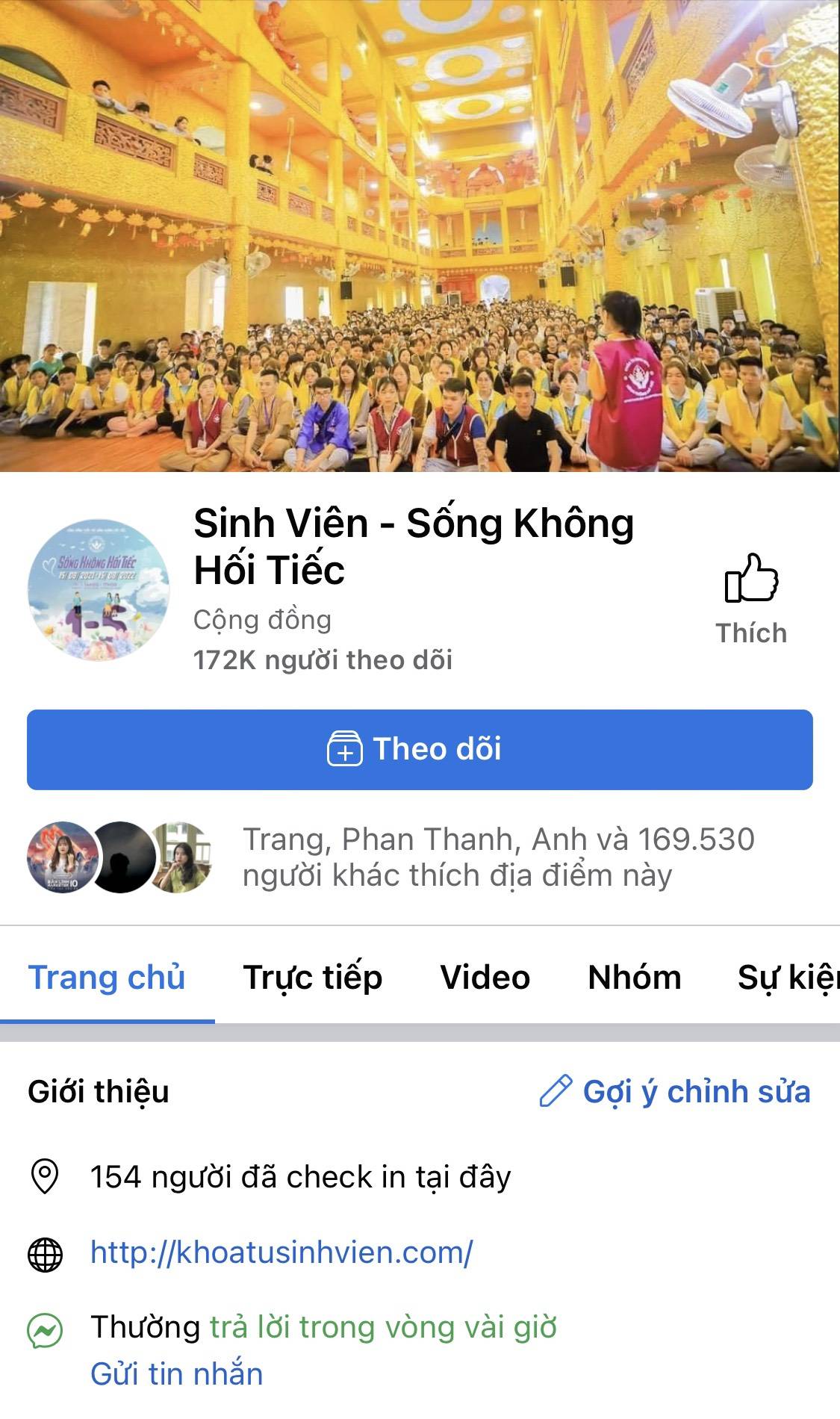 Là một người trẻ quan tâm đến từ thiện, tôi đặc biệt ấn tượng với hành trình lan tỏa yêu thương, nhân rộng lòng nhân ái của Cộng đồng “Tuổi trẻ Sống không hối tiếc”. Dù mới được thành lập từ tháng 8 năm 2021, nhưng fanpage “Sinh viên - Sống không hối tiếc” của cộng đồng đã nhận được sự quan tâm “khủng” với hơn 169 nghìn lượt yêu thích và 172 nghìn người theo dõi.