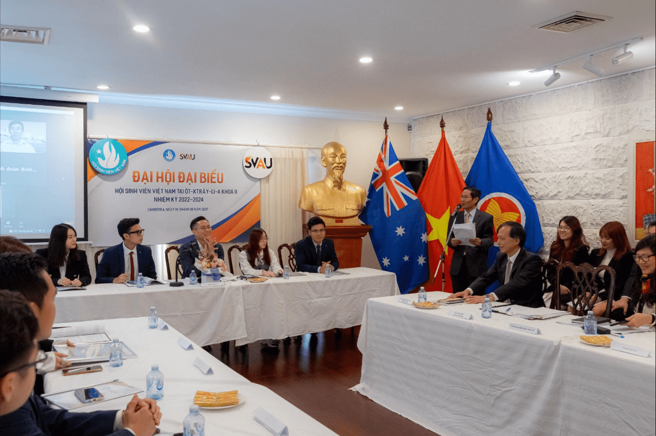 Vừa qua, Hội Sinh viên Việt Nam tại Australia (SVAU) đã tổ chức Đại hội Đại biểu nhiệm kỳ khóa II, 2022 - 2024 tại Đại sứ quán Việt Nam tại thủ đô Canberra, Australia (Úc).