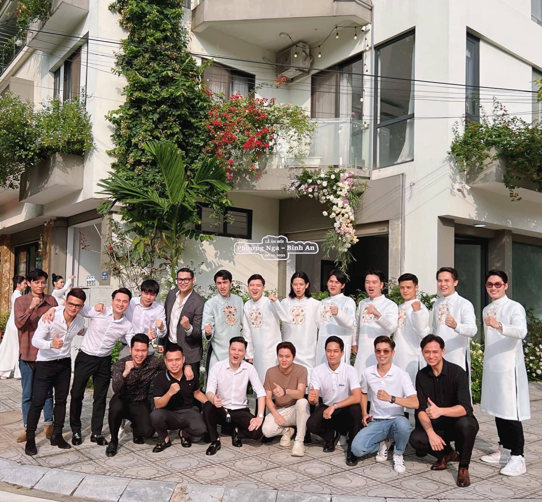 Sau nhiều ngày chờ đợi, người hâm mộ chính thức được thấy Á hậu Phương Nga xinh đẹp rạng ngời, khoác trên mình tà áo dài xanh dịu dàng, thướt tha của thương hiệu áo dài Ngoc Han Boutique - thương hiệu áo dài của Hoa hậu Ngọc Hân trong lễ ăn hỏi diễn ra sáng 6/10. Bên cạnh nhan sắc đỉnh cao của cô dâu và chú rể, tôi đặc biệt dành sự chú ý cho đội hình bê tráp toàn những ngôi sao đình đám trong làng giải trí Việt.