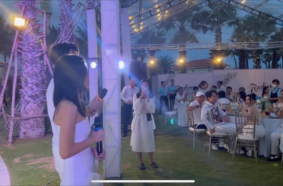 Trước đó, tối 9/10 Diệu Nhi- Anh Tú cũng đã tổ chức bữa tiệc thân mật ngay tại khu nghỉ dưỡng, các khách mời đều diện đồ màu trắng tone sur tone với cô dâu chú rể. Tại đây cặp đôi đã tự mình làm MC và có những chia sẻ hết sức cảm động: “Ngày hôm nay Tú với Nhi rất vui vì có bạn bè, gia đình hai bên ở đây chung vui, dù đường xá xa xôi. Hôm nay chỉ là một buổi tiệc nhỏ. Buổi tiệc hôm nay cũng không có kịch bản, không có MC, chủ yếu để mọi người ăn uống và tận hưởng bên nhau.” Cả hai cũng nhắc nhở khách mời không phát trực tiếp để đảm bảo độ riêng tư giúp mọi người “quẩy” hết mình mà không lo lắng.