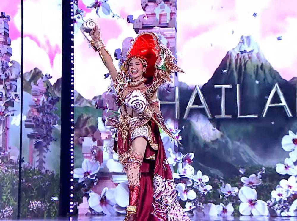 Ngay từ những giây phút đầu xuất hiện, đại diện Thái Lan đã có những động tác vô cùng dứt khoát, thể hiện đặc trưng của bộ môn này. Bộ trang phục trên không chỉ được đánh giá cao bởi ý tưởng thiết kế mà còn nhận được sự ủng hộ bởi phần thể hiện của Hoa hậu Engfa.