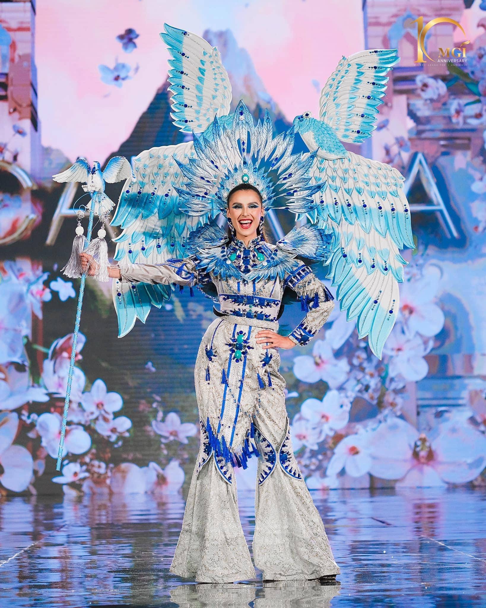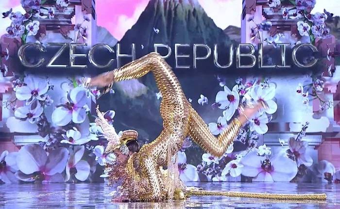 Hoa hậu Cộng hòa Séc Mariana Beckova đã mang đến cuộc thi năm nay một thiết kế lấy cảm hứng từ cây Linden - một loại dược liệu đặc trưng của vùng đất nơi cô sinh sống. Có lẽ, đây xứng đáng là một trong những biểu diễn “lăn xả” nhất trong các mùa National Costume tại MGI.