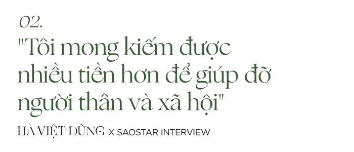 Hà Việt Dũng: Diễn xuất đối với tôi hiện tại bao gồm tất cả mọi thứ. Tôi đam mê diễn xuất lắm và đây cũng là nguồn thu nhập chính luôn. Hiện tại, tôi chưa đá chéo sân sang lĩnh vực khác, cho nên làm phim vẫn là nguồn thu mà tôi trông cậy vào rất nhiều. Song song với việc đi quay phim, mình còn có thêm những hợp đồng quảng cáo, chúng cũng hỗ trợ thêm cho kinh tế gia đình.