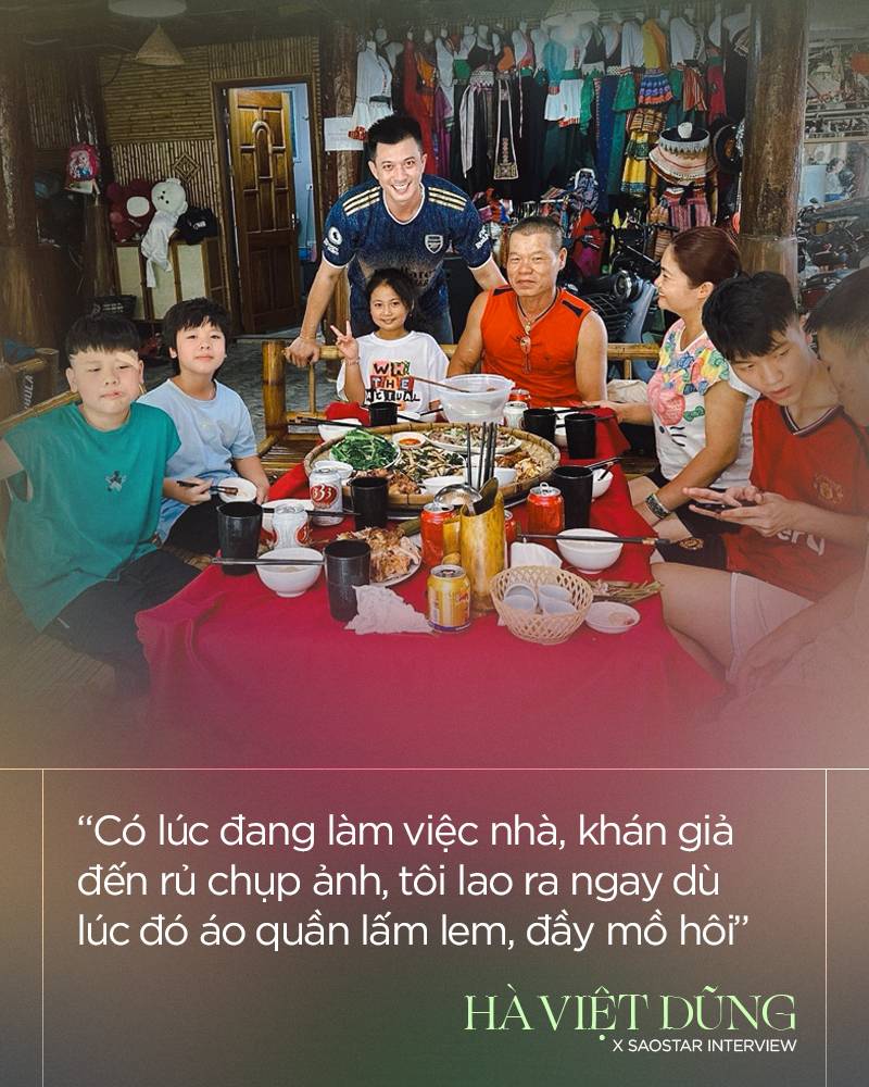 Hà Việt Dũng: Công việc này có liên quan đến nghề diễn viên của tôi nữa. Khi ở nhà, đang lúi húi trong bếp thì khán giả tìm đến, gọi ý ới: “Dũng ơi, ra chụp với cô/chị kiểu ảnh nào”, thì tôi sẵn sàng phi ra ngay.