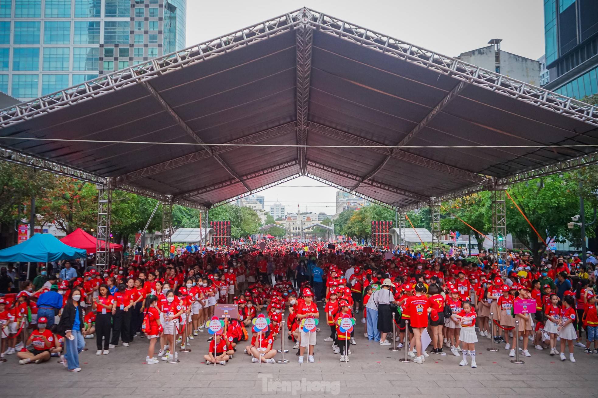 Hơn 3.000 thiếu nhi đến từ nhiều tỉnh thành tham gia đồng diễn Flashmob xác lập kỷ lục Việt Nam và rèn luyện thể thao, nâng cao sức khỏe qua giải chạy bộ thiếu nhi do Hội đồng Đội Trung ương tổ chức tại phố đi bộ Nguyễn Huệ, TPHCM.
