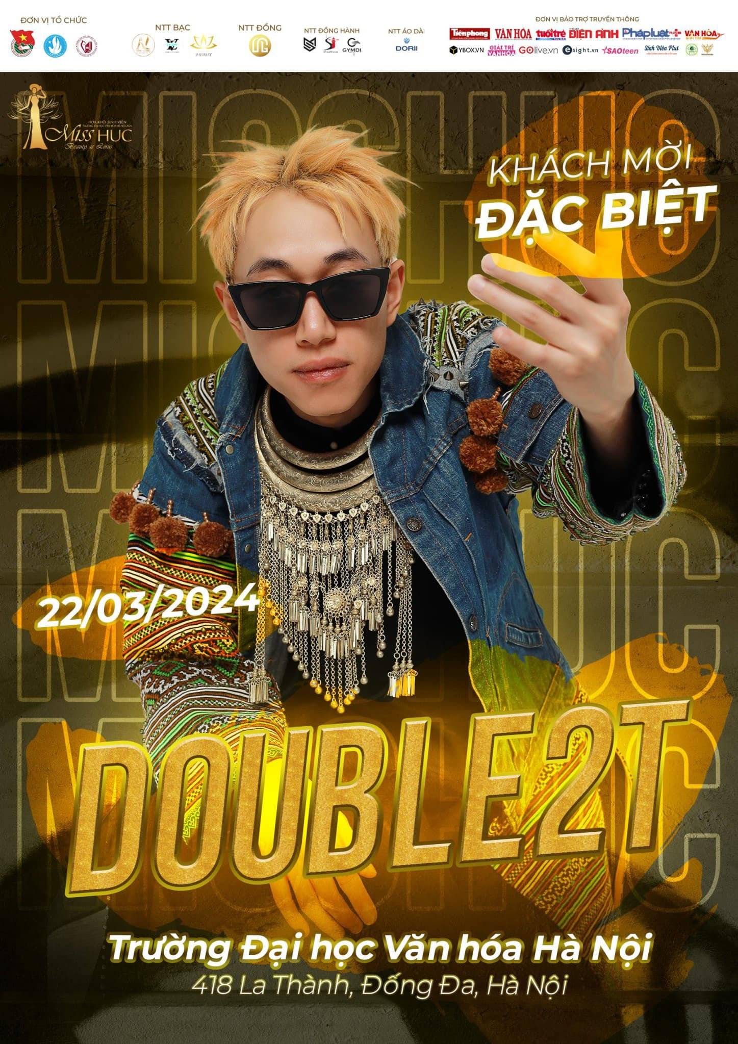 Hỡi các HUCers ơi, các bạn đã sẵn sàng cho đêm Chung kết Miss HUC 2024, hứa hẹn sẽ bùng nổ hơn bao giờ hết với sự góp mặt của khách mời đặc biệt - nam rapper tài năng Double 2T chưa nào?