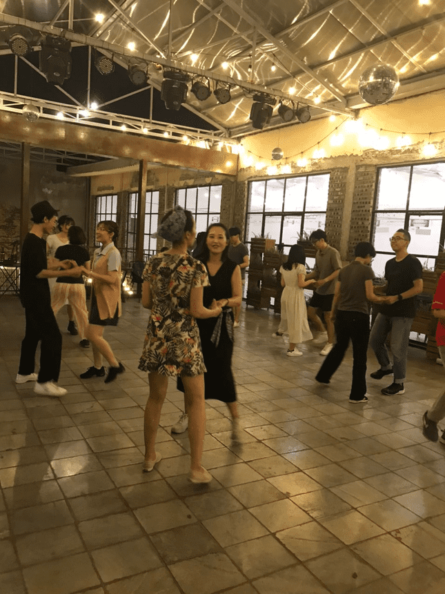 Tối cuối tuần, mới 19h30, dưới ánh đèn vàng của hội trường thuộc khu phức hợp Complex 1, hơn chục thành viên của CLB Swing Dancing Ha Noi đang cặm cụi xếp gọn những bộ bàn ghế còn ngổn ngang, để lấy chỗ lát nữa còn “đu đưa”. Đúng 8h, mọi người đã có mặt đông đủ , chủ yếu là [COLOR=rgb(184, 49, 47)]những người trẻ, cả người Việt lẫn người nước ngoài, ai nấy đều hào hứng, chào nhau vui vẻ. Hôm nay có thêm một vài người mới. Những thành viên cũ không ngại ngần đến hỏi: “Bạn đến để nhảy swing phải không?” và cùng[COLOR=rgb(184, 49, 47)] bắt chuyện vui vẻ.