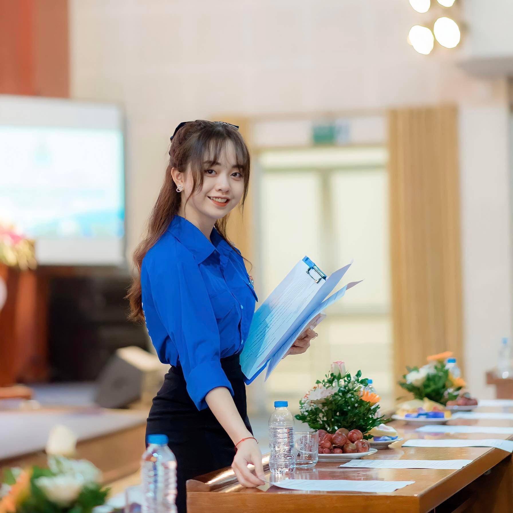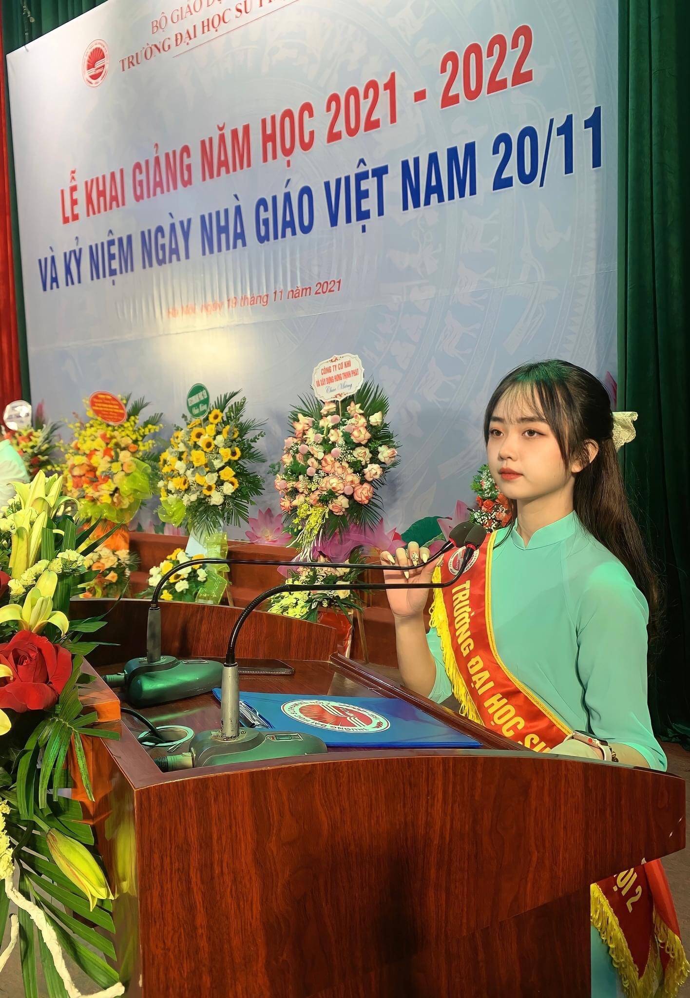 Cô nàng Linh Giang trong sự kiện hỗ trợ tư vấn học đường năm 2021-2022 của Trường Đại học Sư phạm Hà Nội 2
