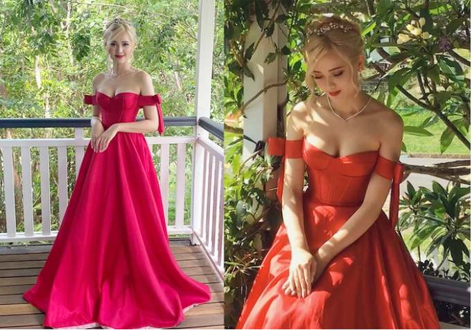 Trong đêm tiệc prom 18/11 vừa qua, nữ sinh diện bộ đầm dạ hội đỏ nổi bật, tôn lên vóc dáng quyến rũ, làn da trắng muốt không tỳ vết và mái tóc bạch kim hiện đại.