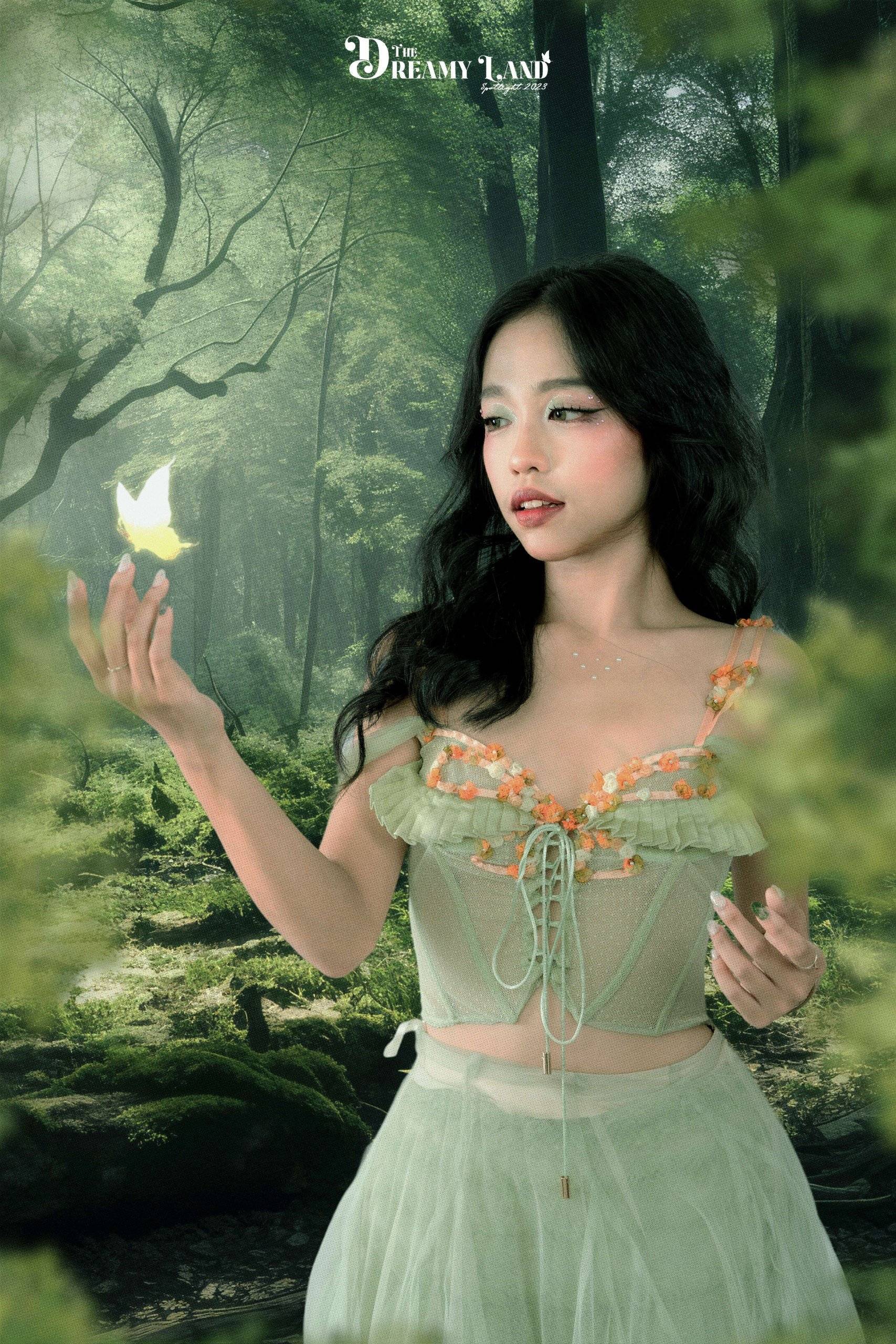 Bộ ảnh “Dandelion” lấy cảm hứng từ bộ phim Tinkerbell với hình tượng trung tâm là nàng tiên phép thuật. Tại vùng đất thần tiên mang tên Spotlight 2023: The Dreamy Land, nữ chính như rong ruổi trên hành trình tìm kiếm những đam mê, hoài bão. Cô gái ấy khát khao cháy bỏng được sống trong thế giới của riêng mình, thể hiện con người thật của mình trước thiên nhiên, muôn vàn chim muông.