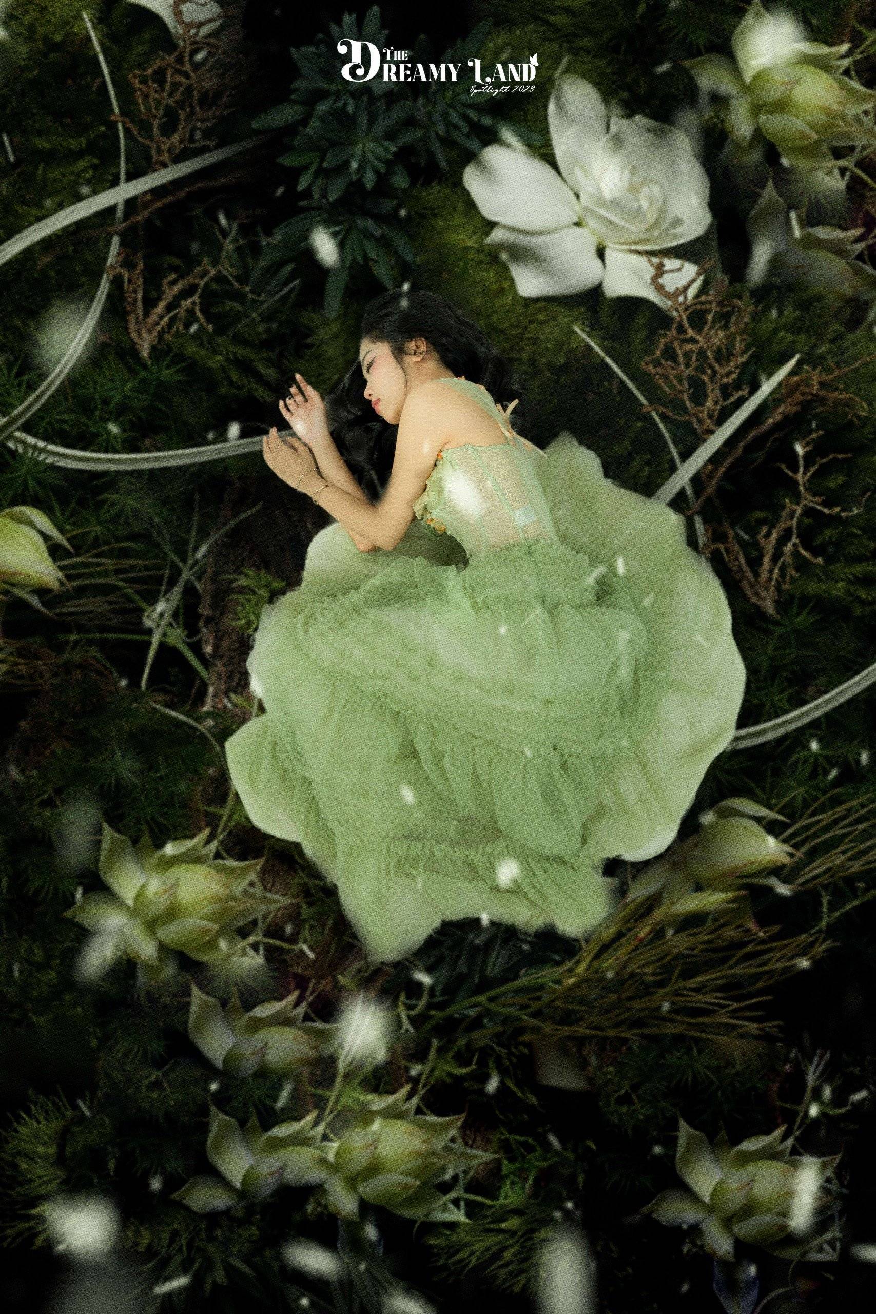 Bạn Bùi Anh Khoa - Trưởng đội Ảnh Spotlight 2023: The Dreamy Land chia sẻ: “Trong quá trình thực hiện, khó khăn nhất với đội sản xuất là công đoạn hậu kỳ. Toàn đội mong muốn xây dựng được bối cảnh một thế giới ngập tràn sắc xanh của rừng và nhân vật nữ chính được hoà mình với thiên nhiên cây cỏ cùng các loài động, thực vật”.