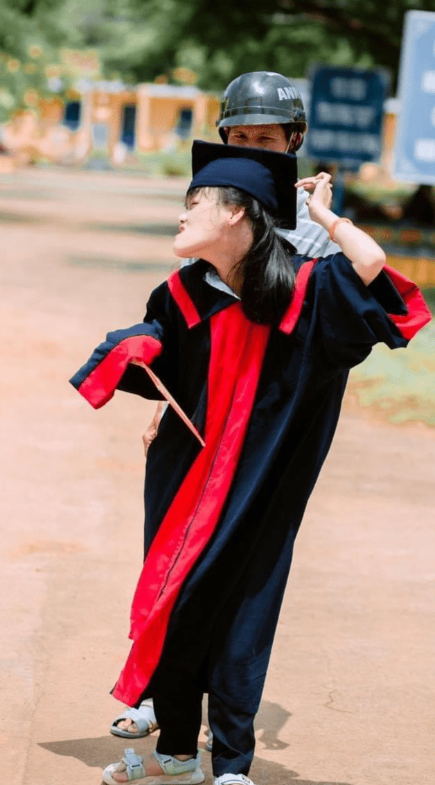 Chụp ảnh kỷ yếu vốn là một hoạt động quen thuộc của học sinh, sinh viên cuối cấp để ghi lại những khoảnh khắc ấm áp bên bạn bè, thầy cô, gia đình. Một trong những hình ảnh ấn tượng nhất mùa kỷ yếu năm nay đó chính là khoảnh khắc một nữ sinh cười tươi, hồn nhiên khi được bố đội mũ cử nhân tại trường THPT Phạm Văn Đồng, Quảng Ngãi.
