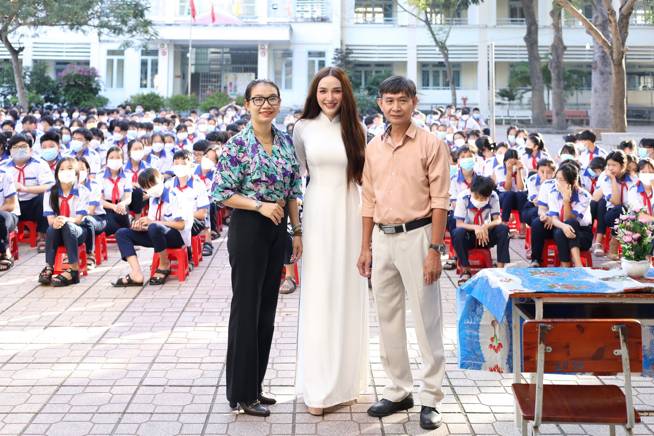 Theo đuổi phong cách sống cống hiến cho đời, cho người, Kỳ Hân luôn cố gắng giúp đỡ những người kém may mắn trong xã hội bằng các hoạt động thiết thực nhất. Nhân ngày Hiến chương các Nhà giáo Việt Nam 20/11 vừa qua, người đẹp đã trở về ngôi trường THCS Hiệp Phước xưa - nơi cô từng theo học để dành những phần quà tới các em học sinh khối 9 có hoàn cảnh khó khăn.