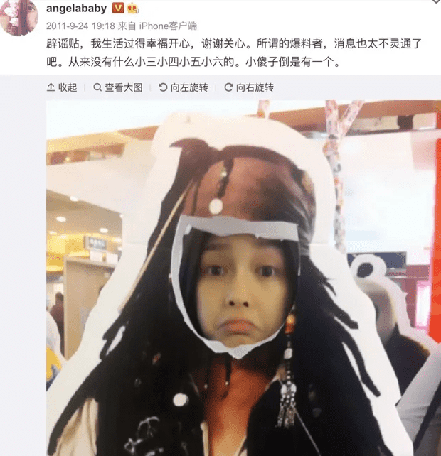 Nữ diễn viên từng trả lời phỏng vấn ngụ ý rằng Huỳnh Hiểu Minhh ngoại tình và chỉ trích Angela Baby là kẻ thứ ba đã cướp người yêu cô với nhiều chiêu trò.