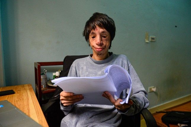 Phạm Đức Chinh mắc hội chứng Treacher Collins. Ảnh: Đ.Huy