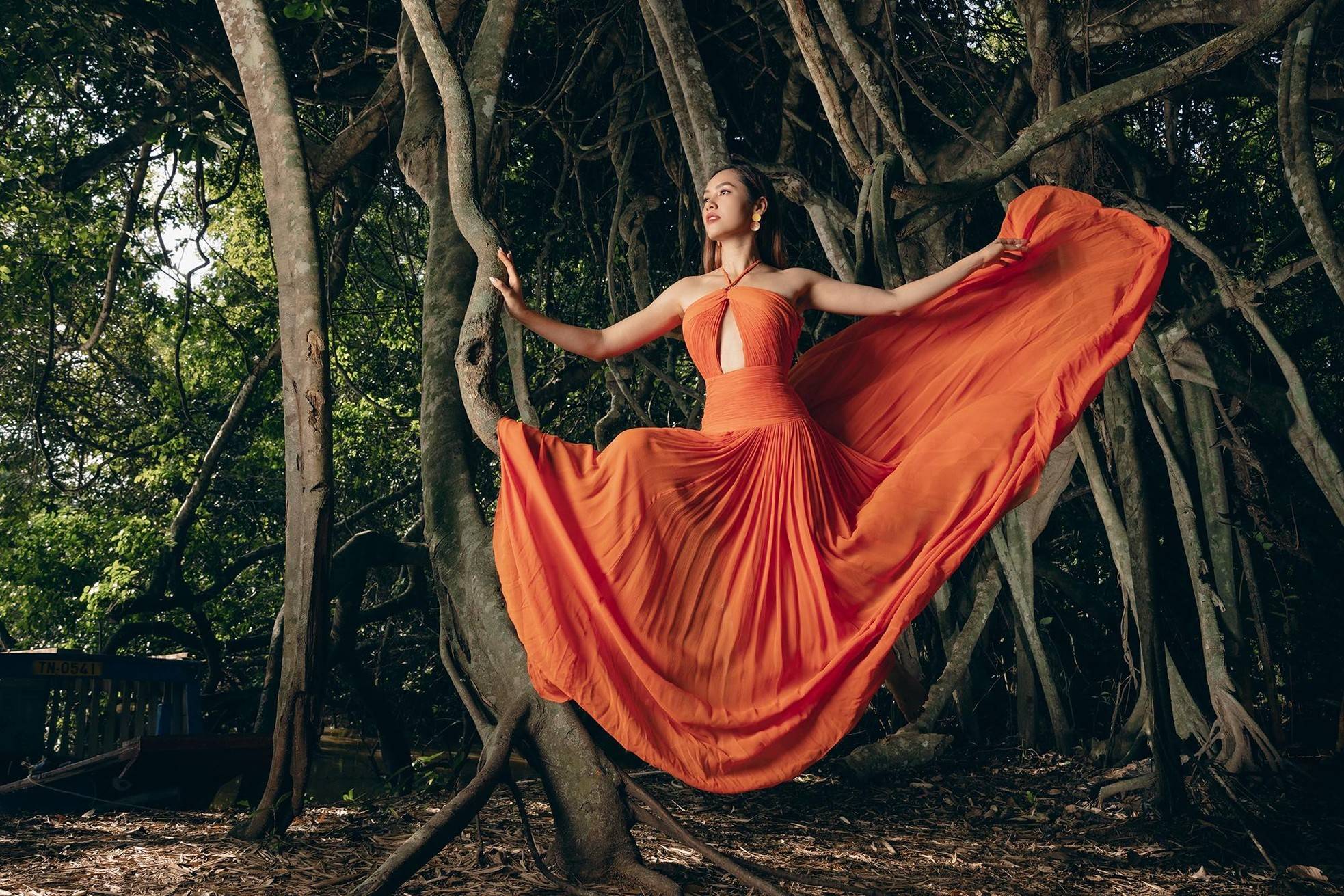 Người đẹp còn ghi lại những khoảnh khắc ấn tượng khi thăm thú một khu rừng bí ẩn ở bên sông.