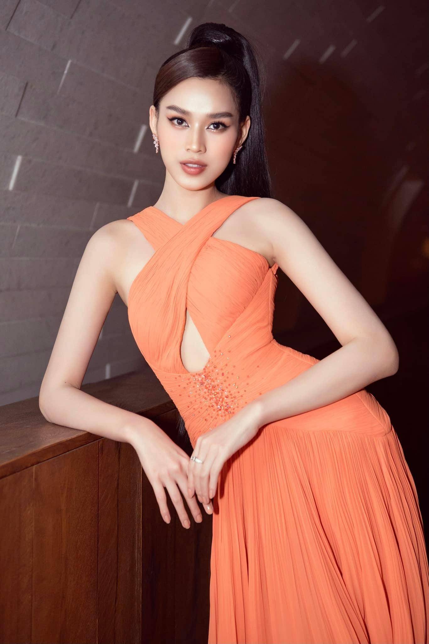 Nhan sắc ngọt ngào và quyến rũ của nàng hậu khi diện thiết kế tông màu cam nổi bật này nhận được rất nhiều lời khen ngợi từ các fans.
