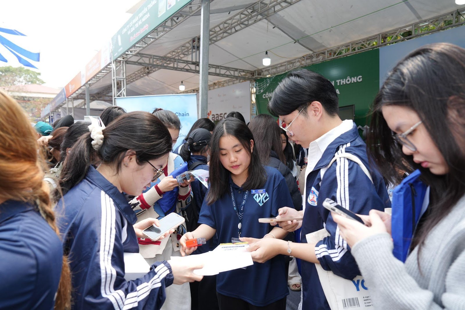 Ngày hội chính NEU Career Week 2025 đã mang đến không gian giao thoa giữa tri thức và cơ hội, với các hoạt động tư vấn và tuyển dụng trực tiếp tại 50 gian trại của các doanh nghiệp danh tiếng. Từ những tên tuổi vững mạnh trong ngành ngân hàng như MB Bank, Sacombank,… đến những "ông lớn" trong lĩnh vực bất động sản như Thiên Khôi; từ những tập đoàn công nghệ đột phá như One Mount, VNG..., cho đến các thương hiệu thuộc ngành hàng tiêu dùng uy tín như TH Food, Mondelez Kinh Đô,… – mỗi gian trại là một cánh cửa mở ra thế giới nghề nghiệp đa dạng, hấp dẫn và đầy tiềm năng. Chương trình đã thu hút hàng nghìn sinh viên, mang đến những cơ hội không chỉ để tìm kiếm công việc mà còn để kết nối, khám phá và xây dựng tương lai.