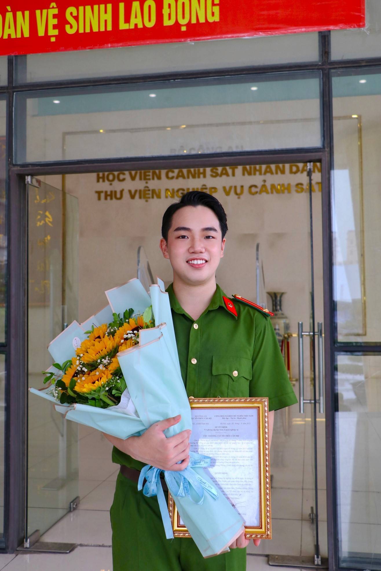 Theo tôi được biết, tân Trung úy Nguyễn Đức Thịnh (22 tuổi, đến từ Bắc Giang), đến từ lớp B11, chuyên ngành Điều tra tội phạm trật tự xã hội chất lượng cao, Học viện Cảnh sát nhân dân là học viên duy nhất xếp hạng tốt nghiệp xuất sắc.