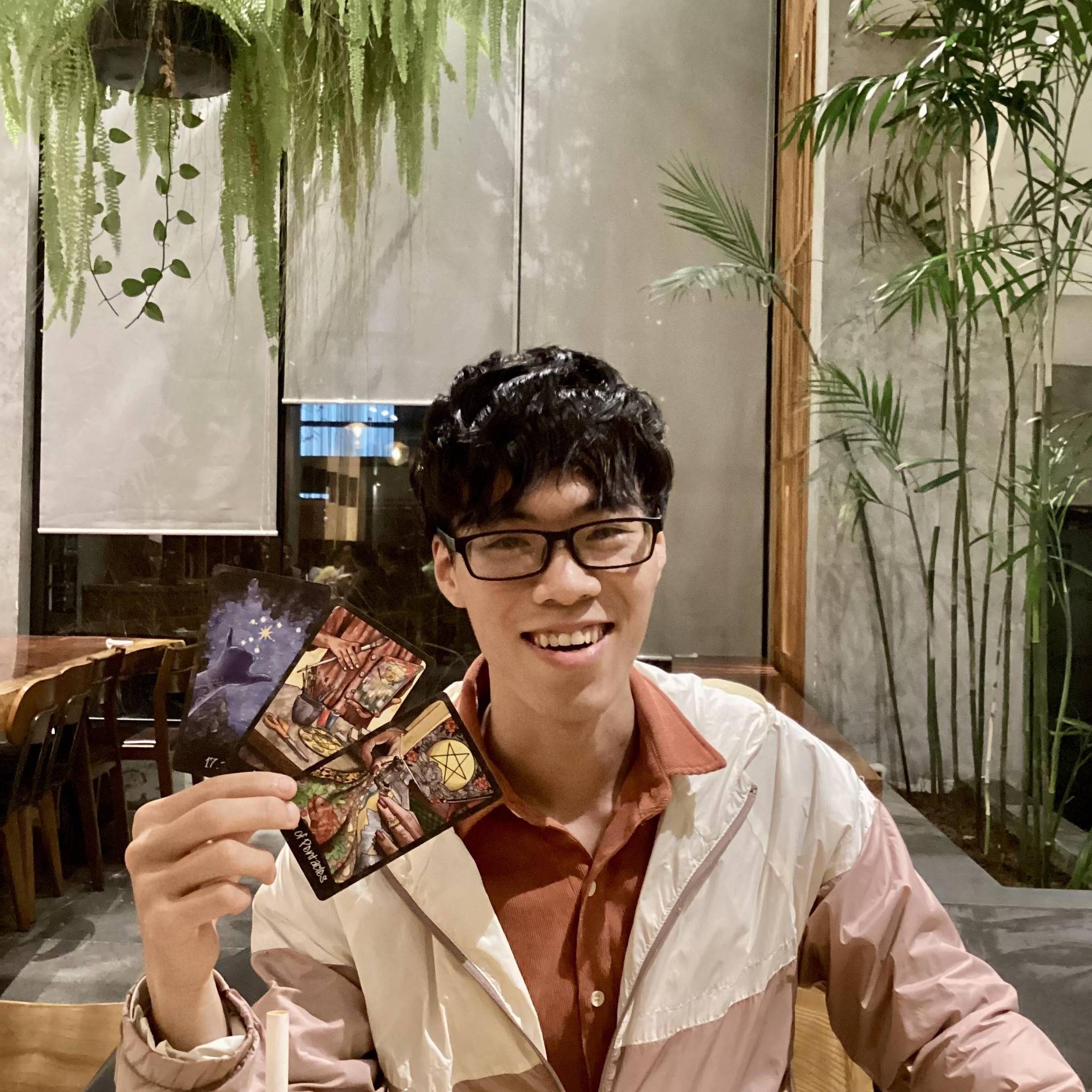 Bên cạnh việc học tập và nghiên cứu, Huy còn có thú vui riêng là sưu tầm và xem tarot. Chia sẻ với tôi về sở thích đặc biệt này, nam thủ khoa cho biết các hình ảnh trên mỗi lá bài lại cho cậu những cảm nhận và kiến thức khác nhau về phong cách hội hoạ, lịch sử, văn hoá… Nhờ đó, tarot tạo ra không gian mở để thủ khoa 10X có thể thoải mái suy ngẫm và chiêm nghiệm. Tôi thấy điều này không chỉ giúp giảm căng thẳng trong học tập, mà còn mang cho Huy thêm nhiều góc nhìn thú vị về văn hoá phương Tây.
