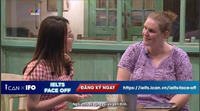 Hoa Minh (bên trái ảnh) tham gia Chương trình IELTS Face-Off.