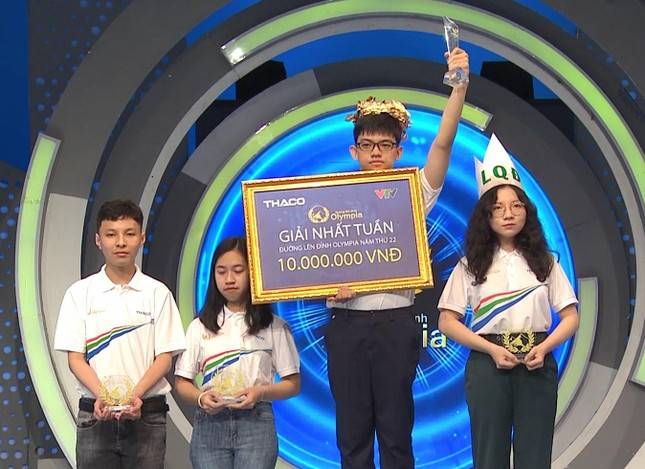 Trận tuần 2 tháng 2 quý IV[COLOR=rgb(184, 49, 47)] Đường lên đỉnh Olympia năm thứ 22 với bốn thí sinh tranh tài: Nguyễn Anh Quân (THCS & THPT Nguyễn Tất Thành, Hà Nội), Phạm Hồ Phương Nghi (THPT chuyên Lê Quý Đôn, Ninh Thuận), Vương Gia Kiệt (THPT chuyên Hùng Vương, Bình Dương) và Nguyễn Phương Uyên (THPT Hương Sơn, Hà Tĩnh).