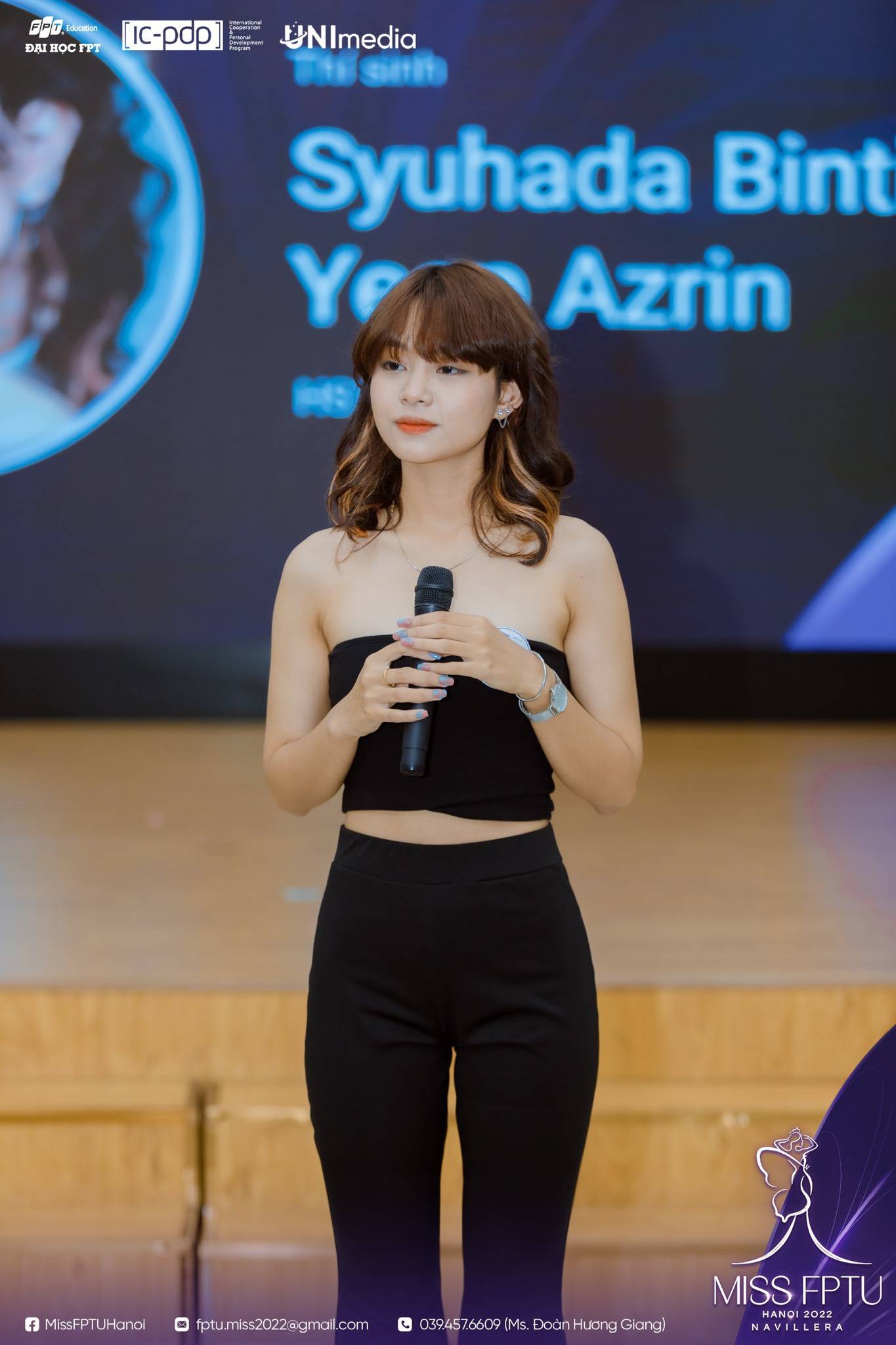 Trong đó, tôi rất ấn tượng với cô gái đạt giải phụ Hoa khôi áo tắm của cuộc thi, thí sinh Syuhada Binti Yeop Azrin. Cô là người đẹp lai hai dòng máu Việt - Malaysia. Sinh ra và lớn lên tại Malaysia, tuy nhiên với tình yêu đối với con người và đất nước hình chữ S, cô gái sinh năm 2000 đã quyết định học tập tại Đại học FPT. Hiện tại Syuhada sinh sống và làm việc tại Thủ đô Hà Nội.