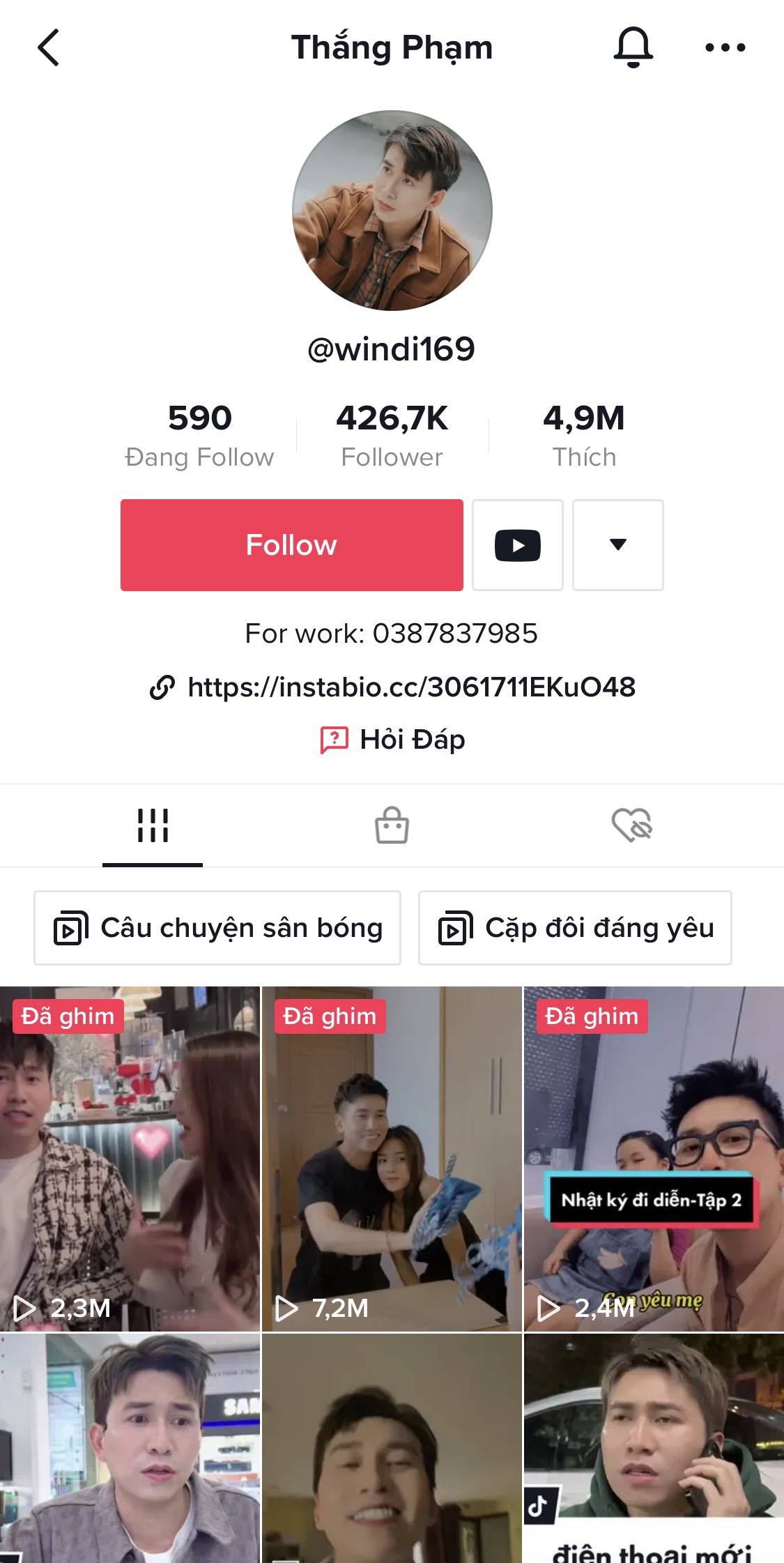 Bên cạnh đó anh bạn còn là một Hot Tiktoker với hơn 426 nghìn lượt theo dõi và 4.9 triệu lượt yêu thích.