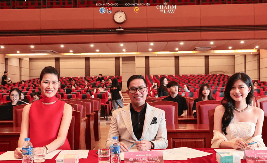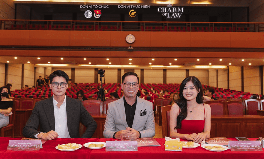 Ảnh 2: Ảnh Ban giám khảo Sơ khảo 02 - Charm of Law 2024 gồm: anh Nhữ Ngọc Nguyên Trực - RM, chuyên gia quản lí tài sản cùng sự trở lại của anh Võ Hiếu Nghĩa - Doanh nhân, đạo diễn sự kiện và chị Nguyễn Mạnh Hà Phương - Hoa khôi Charm of Law 2022.