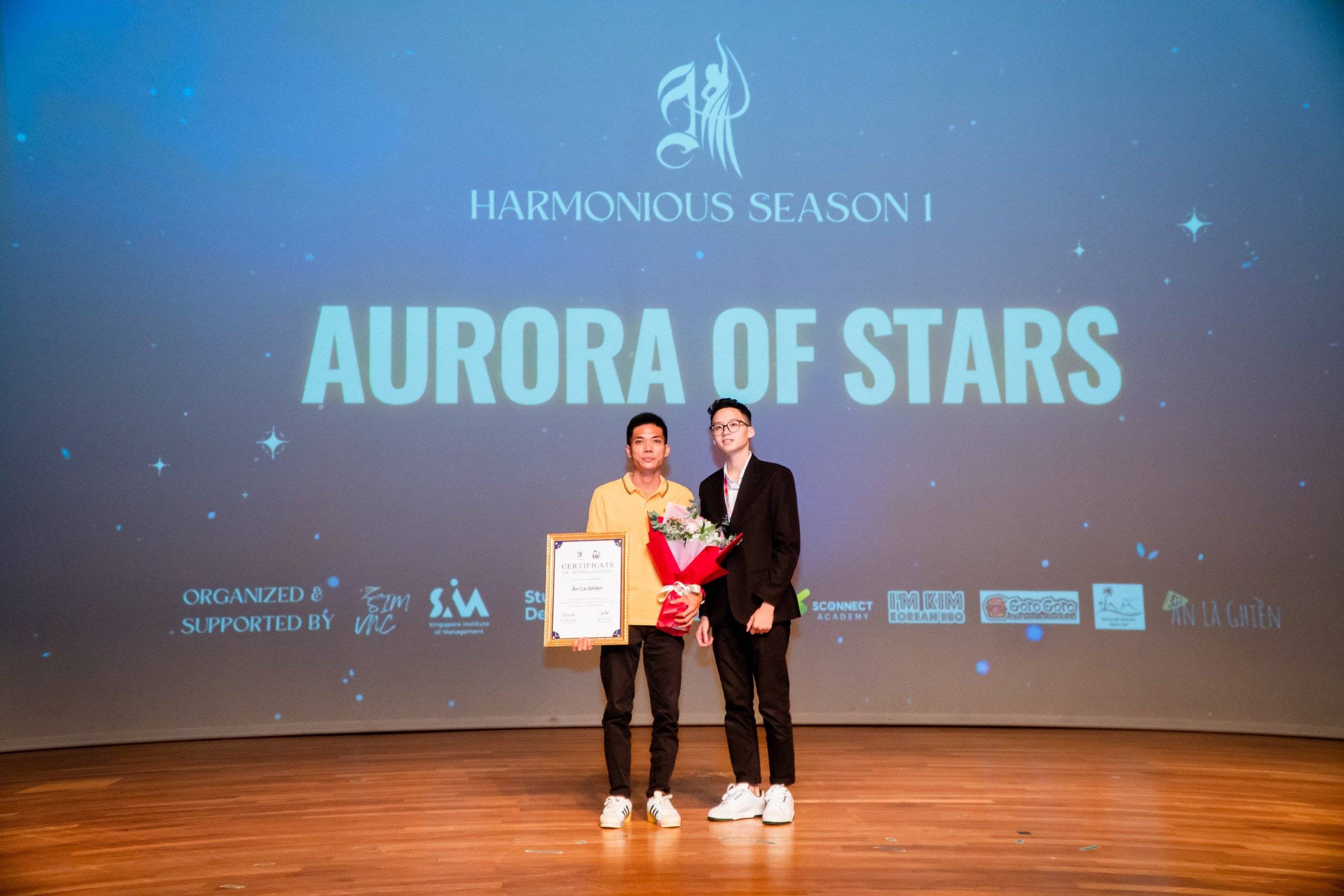 Vào ngày 11 tháng 01 năm 2024, Hội Sinh viên Việt Nam tại Học viện Quản lý Singapore (SIM VNC) đã tổ chức thành công một đêm nhạc đầy ấn tượng mang tên "Harmonious: Aurora of Stars" với sự tham gia tích cực của nhiều khán giả và các khách mời đặc biệt tại Singapore. Tại đây, mỗi sinh viên biểu trưng cho một ngôi sao nhỏ cùng tạo nên một bầu trời sao sáng, thể hiện sự đoàn kết và ước mơ của cộng đồng sinh viên Việt Nam tại Singapore.