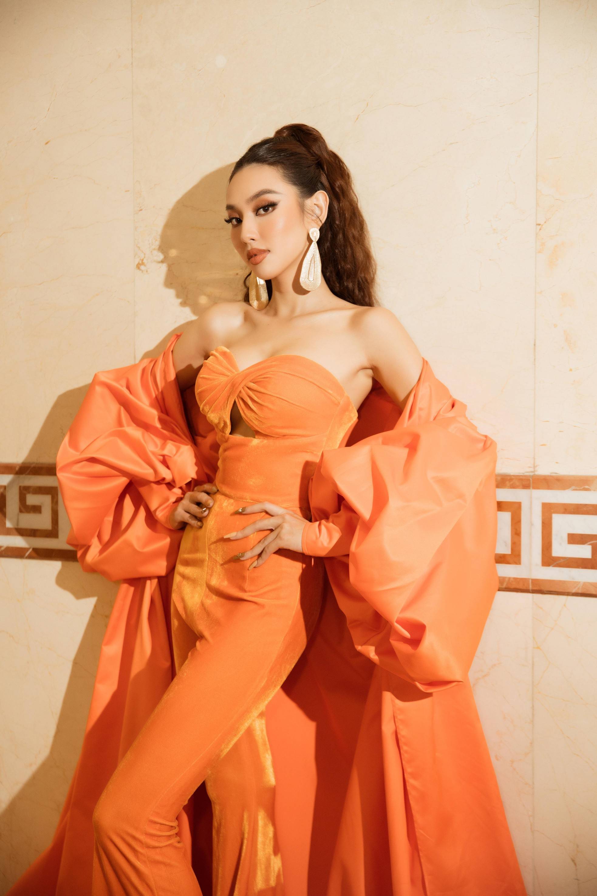 Mới đây khi xuất hiện tại buổi họp báo khởi động Hoa hậu Việt Nam 2022, Hoa hậu Thùy Tiên gây chú ý với bộ trang phục tông màu cam rực rỡ đầy quyền lực.
