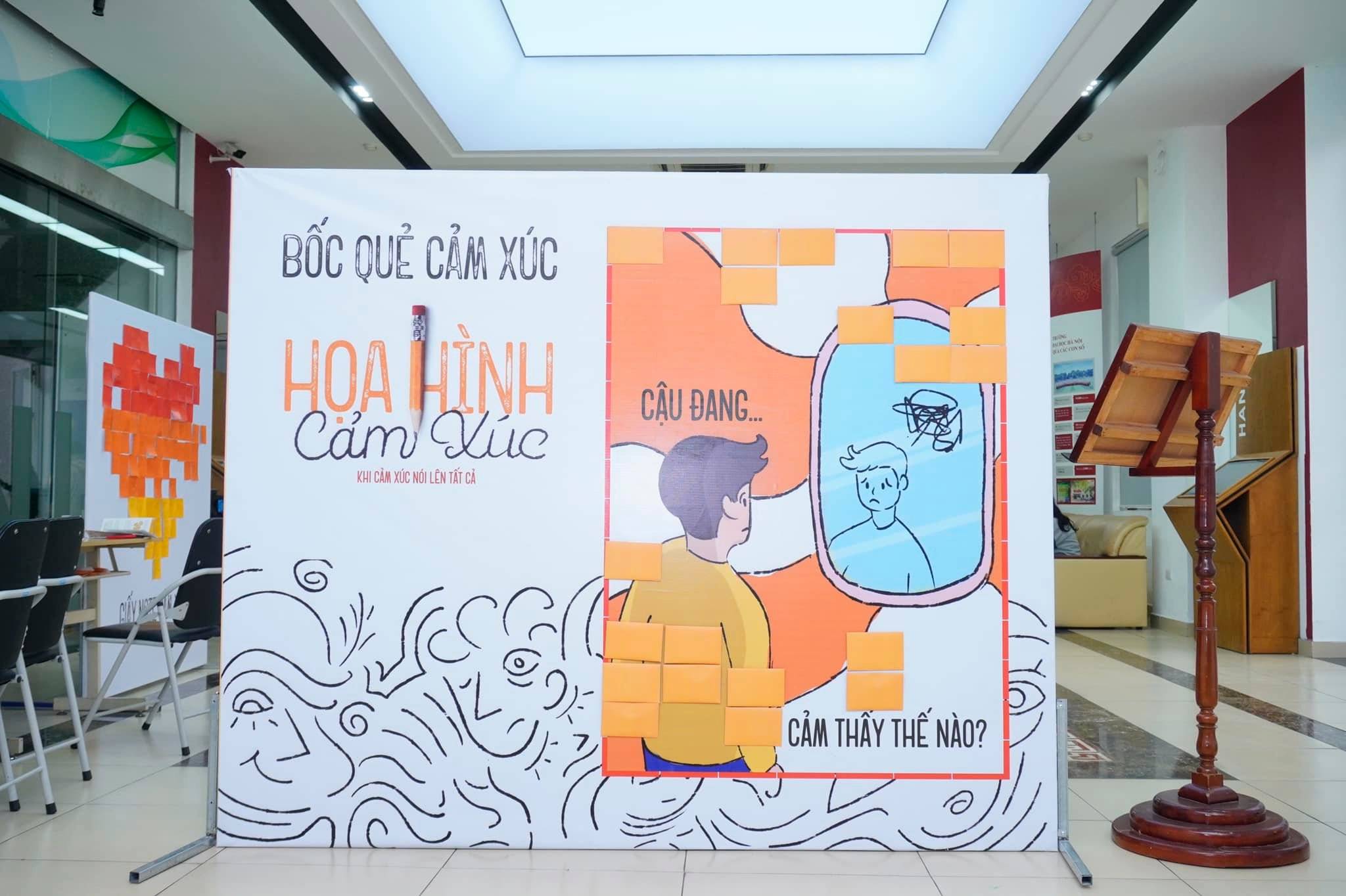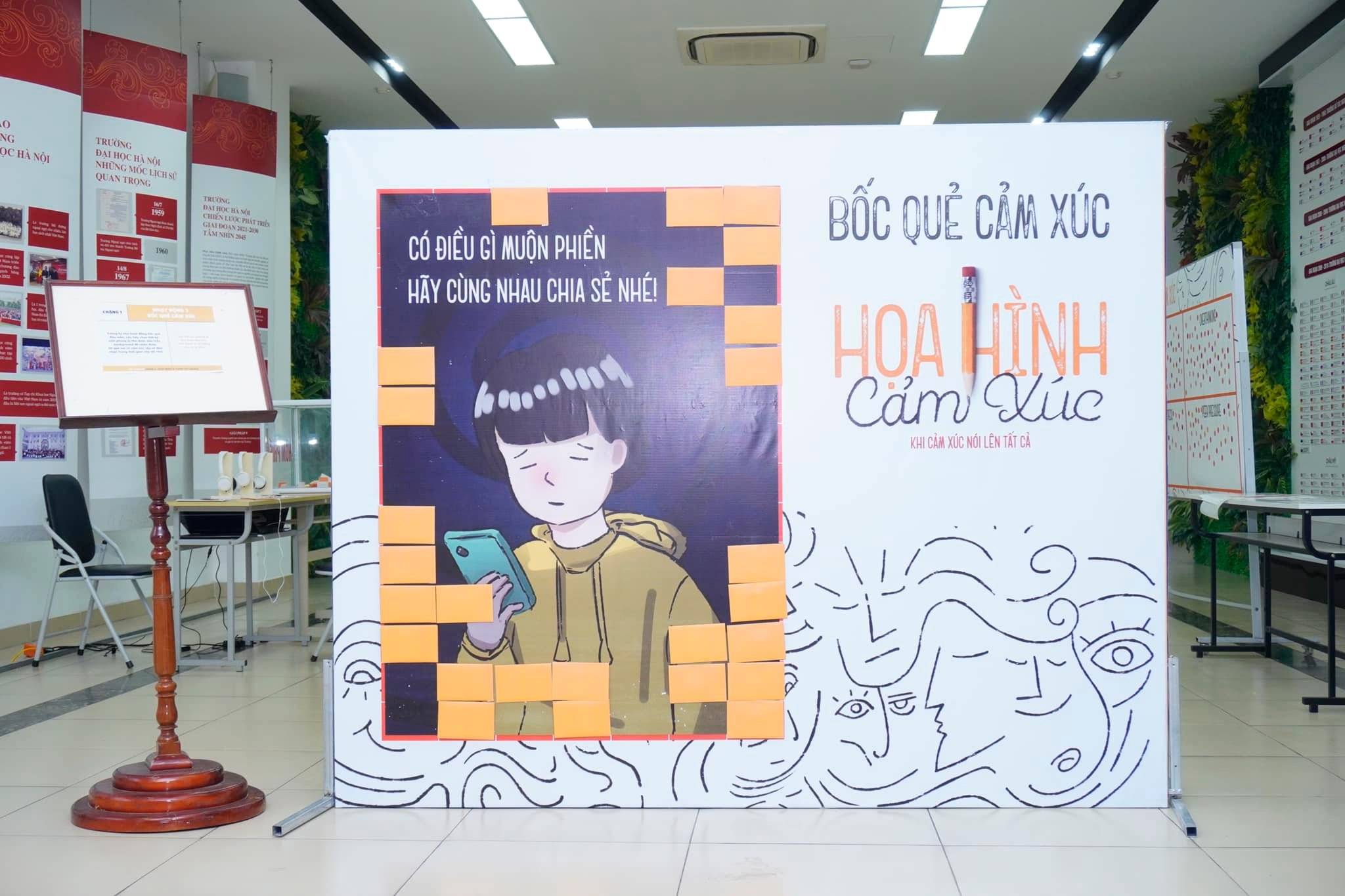 Từ những lo toan, trăn trở về giải tỏa và chia sẻ cảm xúc của người trẻ, nhóm sinh viên năm 4 ngành Truyền thông Doanh nghiệp, Trường Đại học Hà Nội đã bắt tay thực hiện triển lãm tương tác đa giác quan mang tên “Họa Hình Cảm Xúc”.