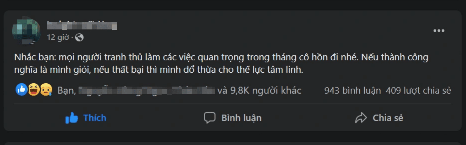 Ý kiến cho rằng nên làm việc trọng đại vào tháng cô hồn để… đổ thừa cho thế lực tâm linh (Ảnh: Chụp màn hình)