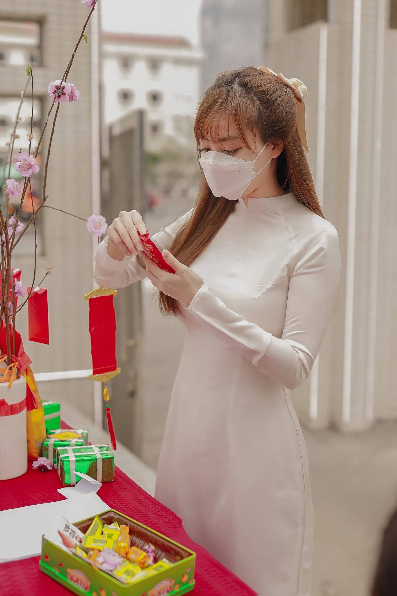 Trước làn sóng phản ứng của dân mạng, người đẹp đăng dòng trạng thái ẩn ý: "Khi thế giới bên ngoài vẫn còn những cuộc tranh luận ngớ ngẩn về đôi giày người khác mang, chiếc áo người khác mặc, vài cái hình xăm bé xíu chưa cần biết thực giả. Họ vội vàng lao vào mổ xẻ đánh giá về nhân phẩm, công việc và chuẩn mực đạo đức của người khác như những nhà nhân phẩm học, đạo đức học tiêu biểu của thời đại. Mình làm gì giữa thế giới này? Bình thản ngồi cà phê và đọc sách nâng cao kiến thức thôi. Thế giới này càng mù mờ thì lòng mình lại càng phải sáng tỏ''.